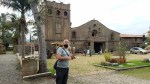 Posando con un arcángel, con la cruz más grande de la catedral de fondo.