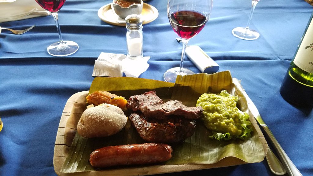 El Pórtico se encuentra a mitad de camino entre Bogotá y Zipaquirá, razón por la cual servía de punto perfecto para nuestra parada de almuerzo. La arquitectura es una colonial, detalle importante como verán un poco más tarde. Tiene muy buen ambiente, ayudado no solo por la arquitectura sino por los bellos alrededores. Es un lugar tranquilo (al menos a la hora que fuimos) y la comida deliciosa. No soy un «foodie» ni nada que se le parezca, pero la comida se merecía la consabida foto Instagrameable.