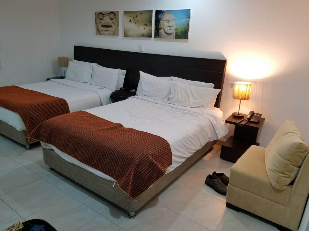 Nuestro día concluyó en Garzón, en el hotel Kahvé. Este hotel tiene una temática cafetera muy bonita, como verán en las fotos que les dejo más abajo. Esa noche recorrimos el pueblo, con la ventaja de que teníamos un guía local acompañándonos en todo momento. Después de unas bebidas en un bar local regresamos al hotel y nos acostamos a dormir.
