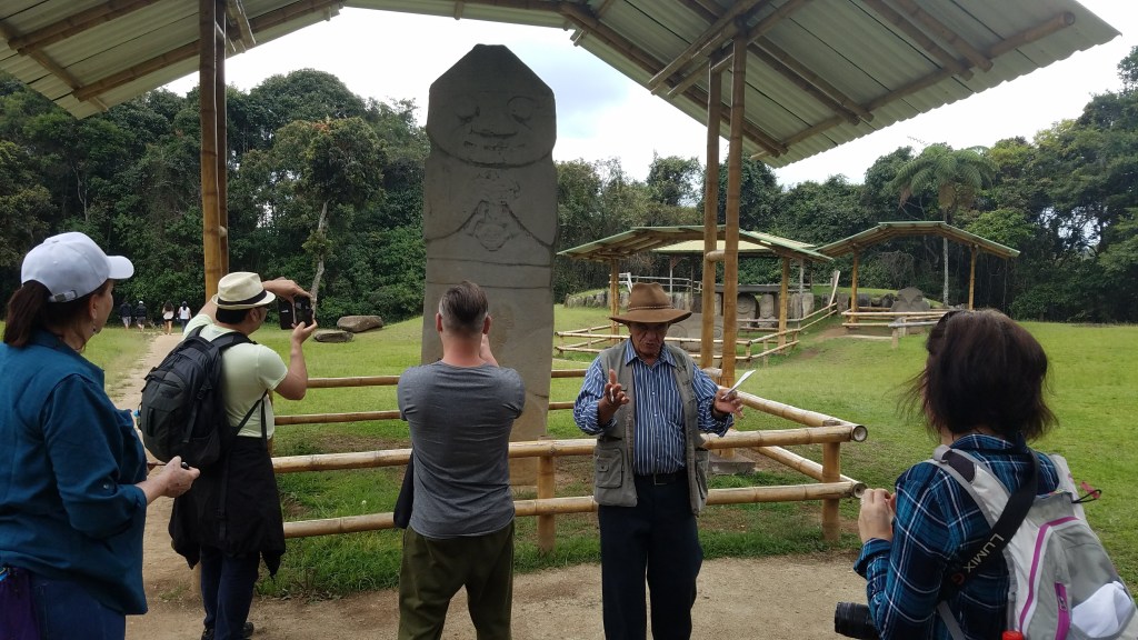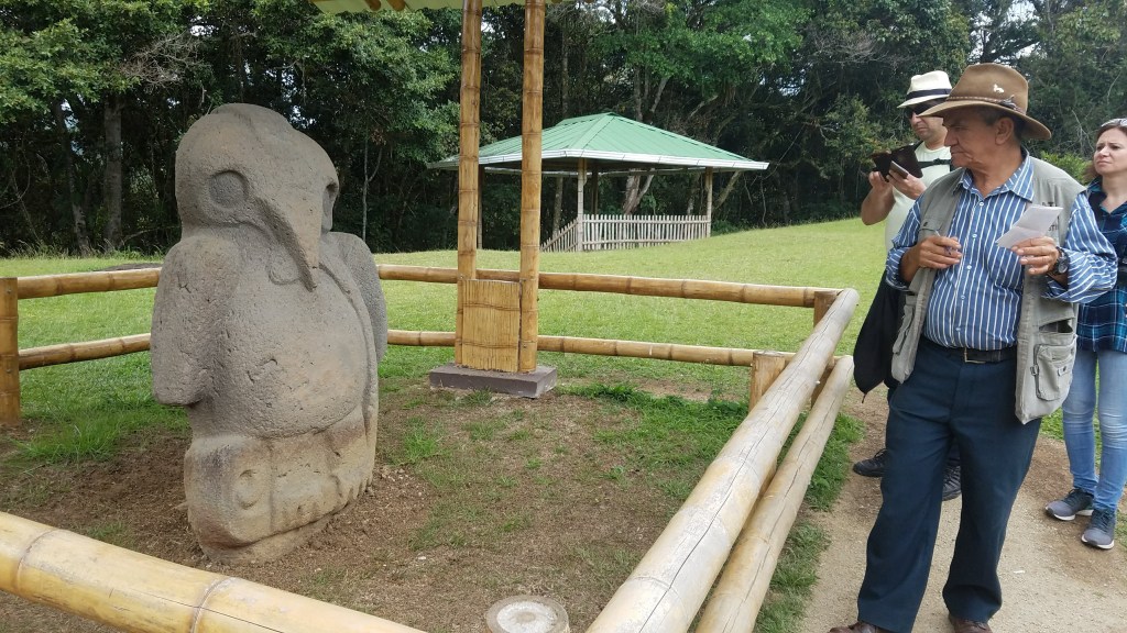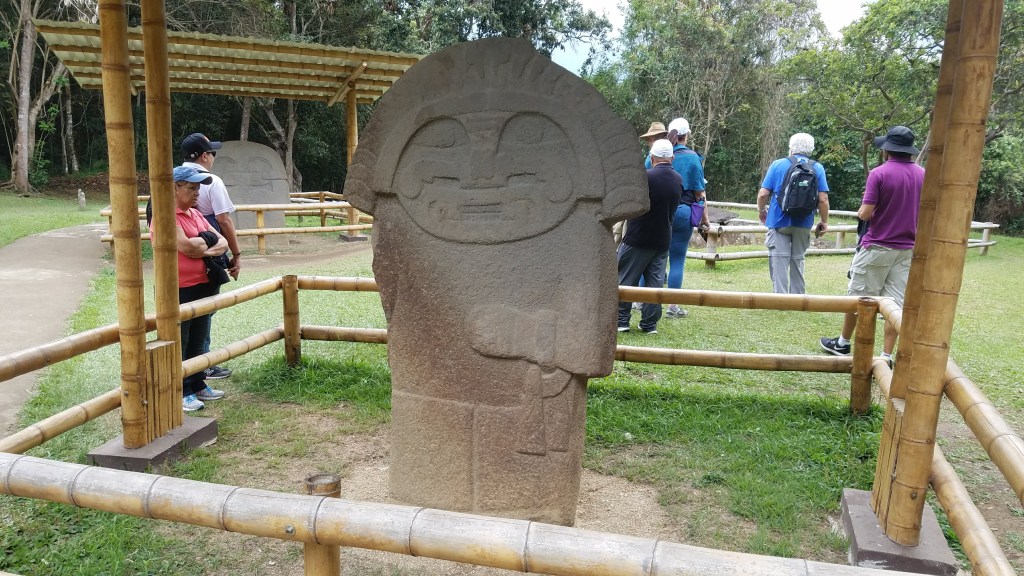 Después del almuerzo partimos hacia el Parque Arqueológico San Agustín. Los predios arqueológicos son tan extensos que tuvimos que dividir la visita en dos días. Para aclarar, estos predios arqueológicos son tres: San Agustín, Alto de los Ídolos, y Alto de las Piedras. Hoy exploraríamos San Agustín, parque que está próximo a cumplir 85 años de fundado, con su correspondiente museo, la Fuente de Lavapatas, y el Bosque de las Estatuas.