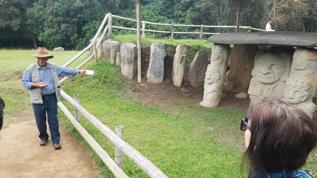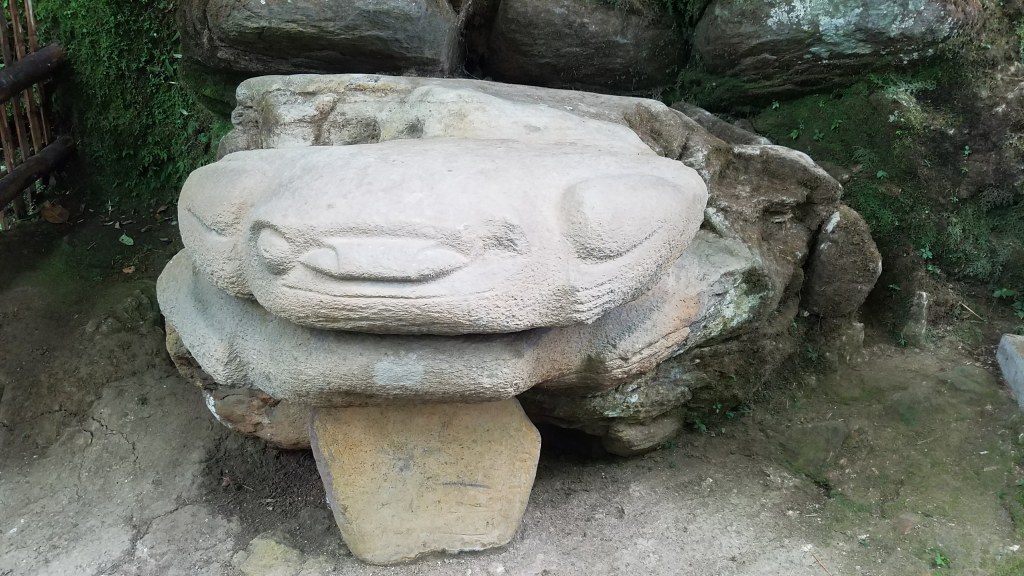 San Agustín es una necrópolis; esto es, se trata de una «ciudad de los muertos», un lugar donde la civilización o civilizaciones de la región enterraban a sus muertos, presumiblemente a aquellos de la realeza (tomando en consideración lo elaborado de las tumbas). Y este detalle es uno que se hará evidente conforme vayan avanzando en su exploración del parque: no se sabe quienes fueron los autores de esta necrópolis. Lamentablemente se trata de una sociedad o sociedades que, para el tiempo de la Conquista, ya habían desaparecido, o estaban en proceso de desaparecer, y nunca pudieron ser estudiadas. Me resultó frustrante no poder darle un nombre y una historia a lo que observaba, no solo por ser un misterio imposible de resolver, sino porque es casi una falta de respeto el que sean olvidados a pesar de su legado arquitectónico. Intenté sacarle algo, aunque fuese un invento, a nuestro guía, algo que explicase la magnificencia de las tumbas que estábamos viendo, pero no. No es que quisiese que nos mintiera, claro, es que me hubiese gustado al menos ver qué él pensaba podrían ser esas tumbas, a quiénes podían corresponder, si existían al menos teorías al respecto.