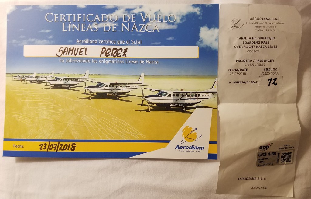 Si usted se marea fácilmente en un avión, mi recomendación es que no haga el sobrevuelo, punto. Para que todos los pasajeros puedan ver los geoglifos principales, el piloto se ve obligado a realizar varias maniobras que van a poner a prueba su capacidad para no vomitar. Voy a ir más allá: si las Líneas de Nazca no están en su «bucket list», no las haga. Solo valdrán la pena si puede apreciar lo que está viendo, porque de lo contrario lo recordará como una mala experiencia.
