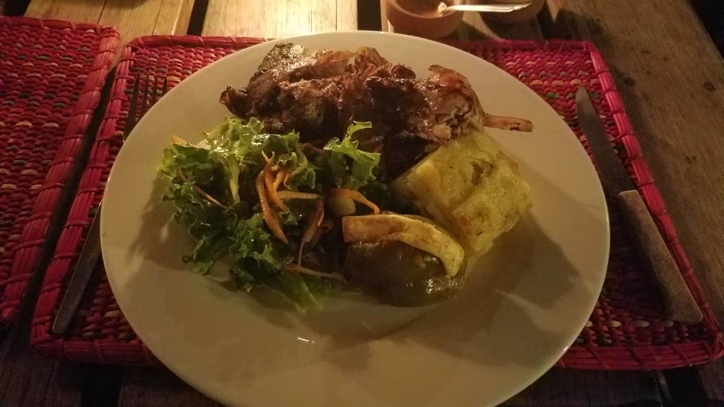 Sobre dónde comer, Cusco le dará una amplia gama de posibilidades. Donde yo fui a cenar esa primera noche fue al restaurante Pachapapa. Allí sirven el famoso Cuí, o conejillo de Indias, un plato muy típico de Cusco, de esos que marcan los viajes con un «si fuiste aquí y no comiste esto, no fuiste aquí». La preparación tarda casi una hora, y una vez le den el plato, y luego de tomarse las consabidas fotos (arriba), coma rápido. El Cuí tiene poca carne, y aunque sabe bueno caliente, una vez se enfría se pone gomoso y se le quitan las ganas a uno. Pachapapa tiene buena comida, y buen ambiente también.