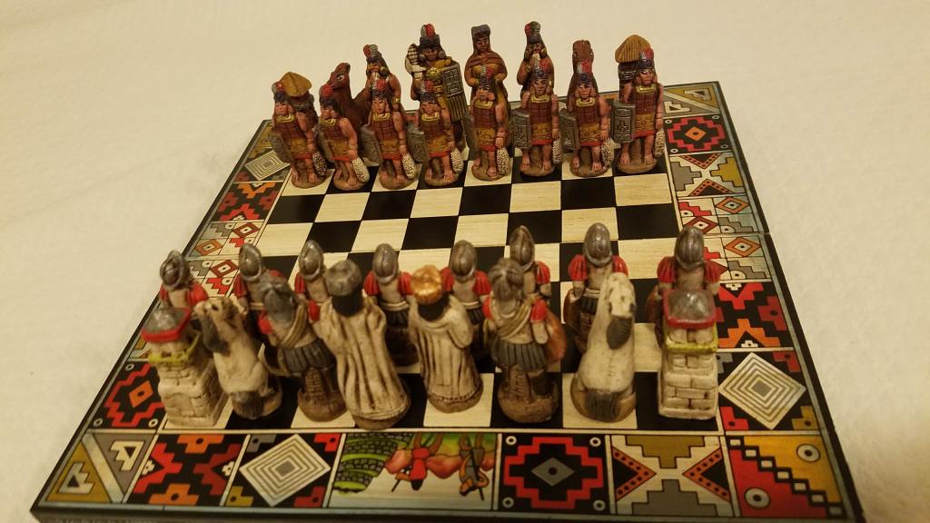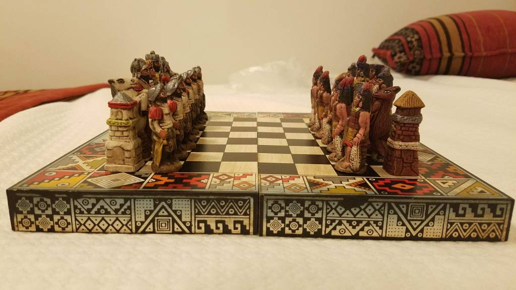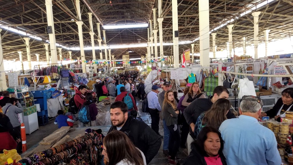 Nuestra otra visita importante del día lo fue el Mercado de San Pedro. Este no es un mercado indígena en el sentido más… digamos, exótico de la palabra. Es un mercado bastante normal, bajo techo, en el que se vende de todo. O sea, lo mismo consiguen las mantas de Alpaca, como frutas, carnes, especias, plantas, trabajos artesanales… yo, que desde mi viaje al mercado de Chichicastenango en Guatemala vengo pendiente de tableros de ajedrez peculiares (costumbre que continué en Colombia), me compré uno con figuras de los españoles versus los Inca.
