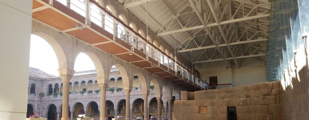 Siendo un templo con muchísimas obras hechas en oro, uno pensaría que los españoles no perderían el tiempo arrasando el lugar. Sí y no. El oro se trasladó a Cajamarca en llamas para el pago del rescate de Atahualpa. Lo que quedó fue eventualmente saqueado en 1533, aunque apenas tres años antes había sido destruido y encima construido el templo de Santo Domingo. Hoy en día todavía se pueden observar elementos de ambos templos (imagen de arriba).