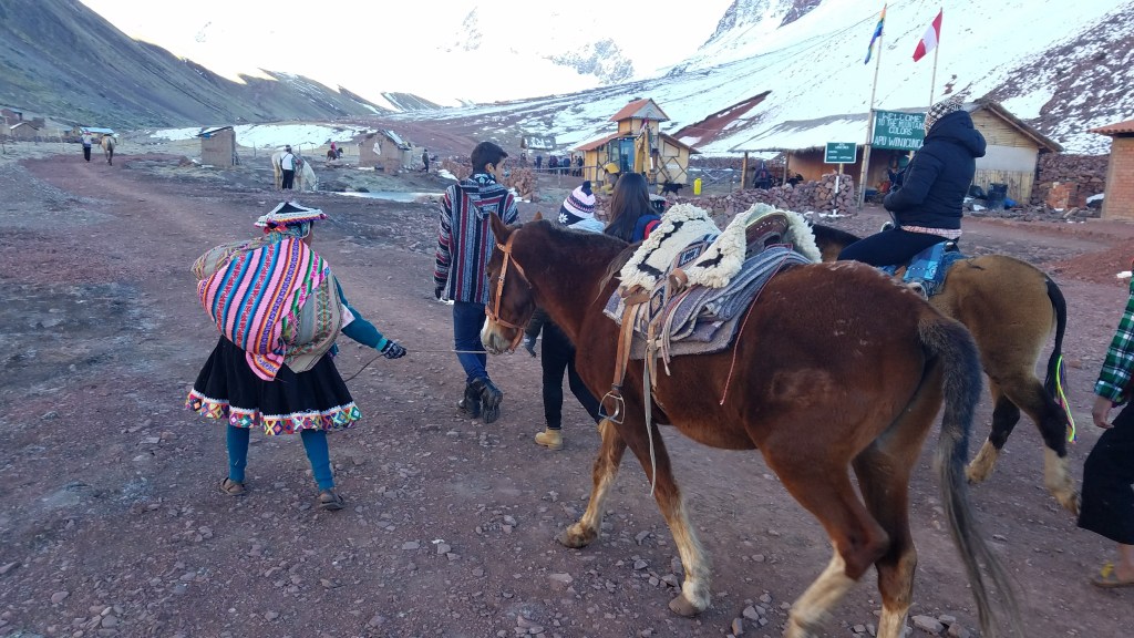 Añadan a eso que, al menos en aquellos días, el fango y el hielo se combinaban para que subir requiriera de todavía mayor esfuerzo. Me parece que hoy en día han mejorado ese camino. Esto de la Montaña de los Siete Colores es una atracción relativamente nueva, causada por el calentamiento global derritiendo la nieve que por miles de años cubría perpetuamente el lugar, permitiendo el descubrimiento de esos suelos multicolores. Por esa razón todavía está bastante cruda turísticamente. Por esa razón deben tener mayor precaución de la habitual, pues aquí no será como en Cusco que si les da algo los atienden enseguida.