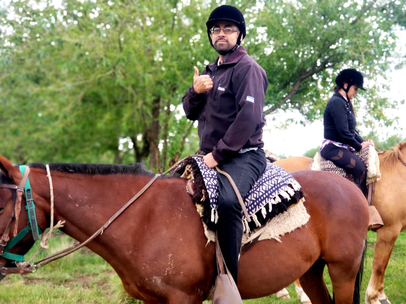 Entre las actividades de la estancia están el mountain bike, trekking, y cabalgatas. Nosotros hicimos esto último, ayudados por el hecho de que los caballos ya se saben el camino de memoria y uno sólo está de pasajero. Si no tomé más fotos del recorrido, ni mucho menos me molesté en tomar video, fue porque no me sentía muy seguro en mi habilidad de sostener el teléfono en un caballo en movimiento. No es que estos caballos fueran rápido, pero tampoco se trataba del caballito que monté en la Montaña Arcoíris, que la gran altura y el ascenso empinado lo imposibilitaban de ir más rápido que «bastante lento». Estos podían galopar si uno así lo deseaba, y en algunas áreas se pusieron a trotar. En fin, el movimiento era lo suficiente como para que en un descuido se me cayera el teléfono y me arriesgase a perderlo para siempre.