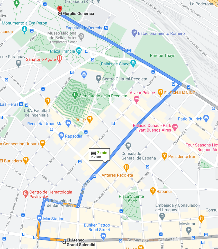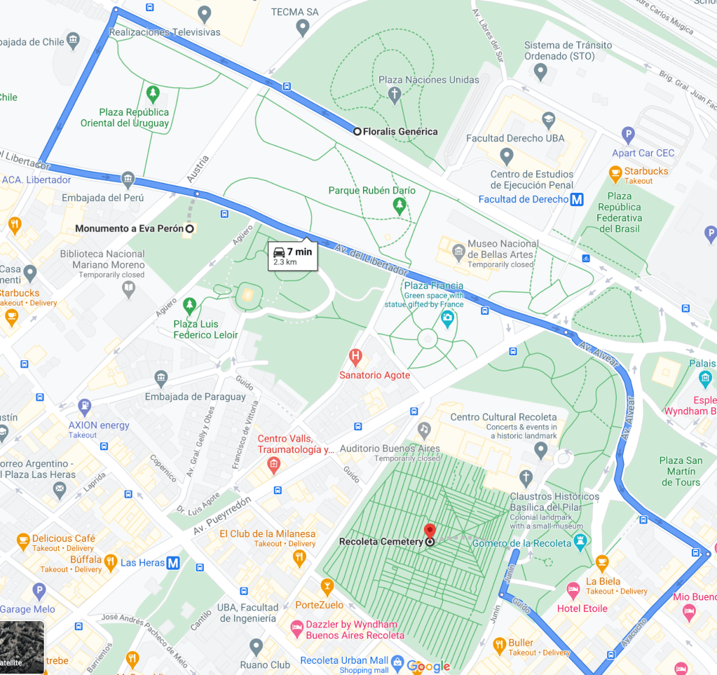 Como pueden ver en el mapa, el Cementerio de La Recoleta – del cual hablamos ya en la primera parte – está cerca, por lo que pueden planificar una visita a todos estos lugares sin tener que andar muy lejos.
