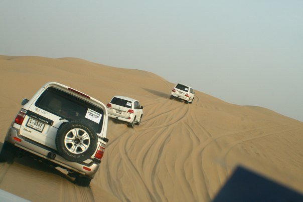 Para el Safari del Desierto se utilizan unas SUVs de cinco pasajeros. Son SUVs normales, no algo habilitado para la arena como sucede con los buggies. Ahora, las SUVs no entran al desierto tal cual; antes de hacerlo les vacían las gomas hasta cierto punto para que tengan mejor agarre y balance en las dunas.