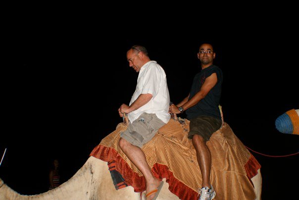 Sin embargo, debo hacer la aclaración que oportunidades de fotos como la de arriba no se dan regularmente. En ese caso particular – recuerden, si tengo pelo en la foto es del 2009 – fue durante el Ramadán, por lo que a cierta hora todo musulmán por obligación debe irse a rezar. Mientras los manejadores de los camellos rezaban, nosotros aprovechamos para tomarnos fotos con ellos. En cualquier caso tendrán la oportunidad de montar a camello y dar una vuelta. Una vuelta, tampoco piensen que se van a ir a explorar por el desierto estilo The Mummy.