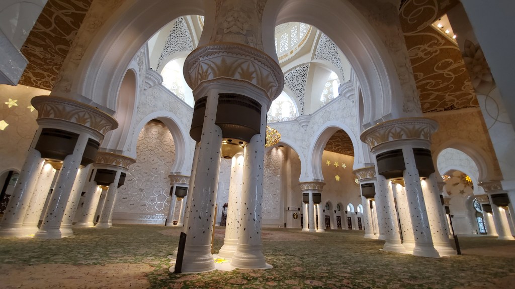 Fue lo que me pasó la primera vez que visité los Emiratos en el 2009. Durante el Ramadán la mezquita es utilizada únicamente para lo que fue mayormente construida: la adoración a Alá. Aún así recuerdo haber quedado maravillado ante el diseño, la magnificencia, y el intenso color blanco que deja a uno ciego cuando este refleja los rayos del sol.