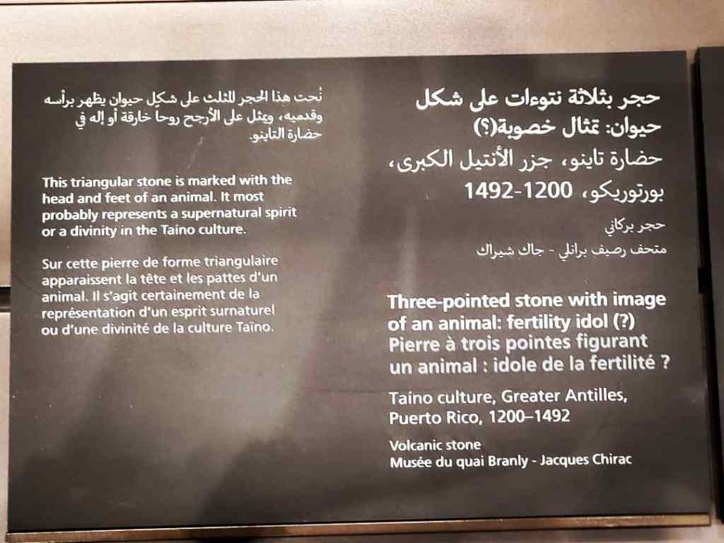 No debí preocuparme, en realidad. Apenas tuvimos una hora para ver lo que pudiéramos de un museo tan grande que hace falta más de un día para verlo en su totalidad. También tienen una colección de obras de arte y objetos arqueológicos que con o sin el expertise necesario se puede apreciar por su calidad o valor histórico. Para los boricuas que me leen, si alguna vez van al Louvre Abu Dhabi, asegúrense de ver el cemí de Puerto Rico que forma parte de su exhibición. Yo no lo pude ver, pero José Luis, uno de mis compañeros de viaje, amablemente me envió la foto que tomó del valioso objeto que forma parte de nuestra propia historia.