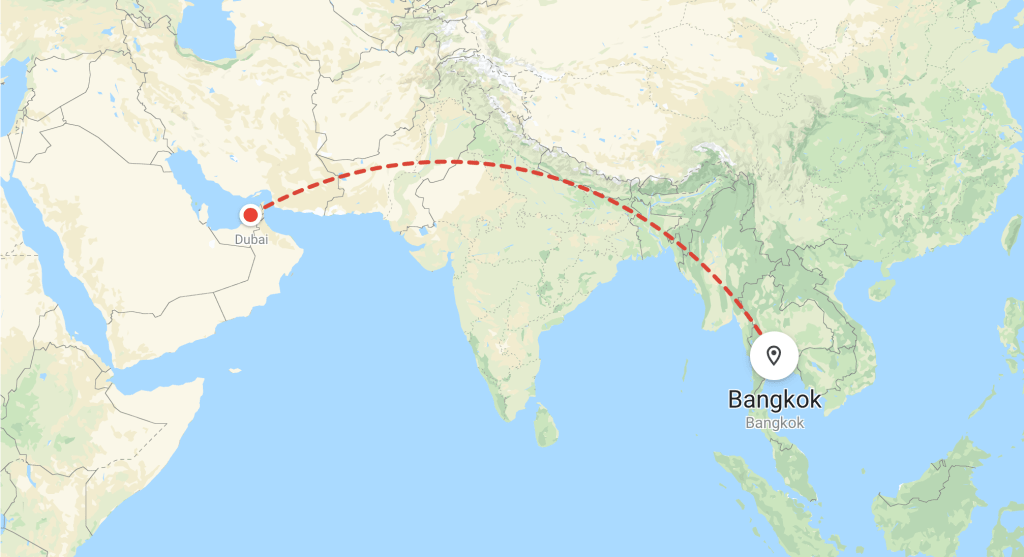 De Dubai a Bangkok son unas seis horas de vuelo. Si mi vuelo de Emirates Airlines de Nueva York a Dubai fue una pesadilla, el vuelo de Dubai a Bangkok redimió el buen nombre de la aerolínea. Aunque iba relativamente lleno, este fue uno placentero y cómodo. Yo diría incluso que el equipo utilizado era uno más nuevo que el de Nueva York, no sólo porque era más cómodo sino porque todo se veía más… avanzado. Esto es importante porque aunque las seis horas no se comparan con las trece del vuelo anterior, sigue siendo un vuelo largo y cansón.