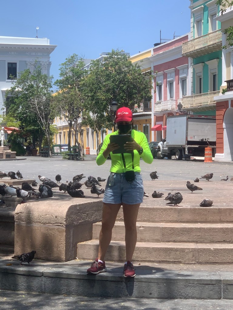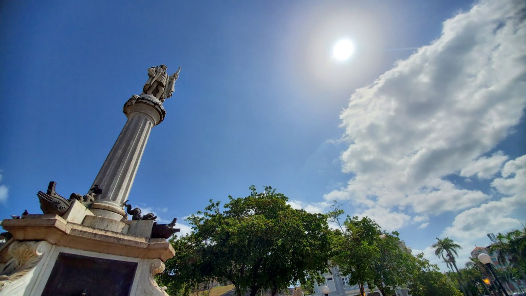 El punto de encuentro del grupo fue la Plaza Colón en el Viejo San Juan. Porque en Puerto Rico todavía Cristóbal Colón no es repudiado de manera oficial por el gobierno. La vieja narrativa de que los nobles Conquistadores básicamente nos hicieron un favor adueñándose de estas tierras, o de lo contrario «seguiríamos en taparrabos» sigue vigente. (Una muy equivocada, puesto que los taínos no usaban taparrabos. Estaríamos desnudos ahora mismo, jejeje).