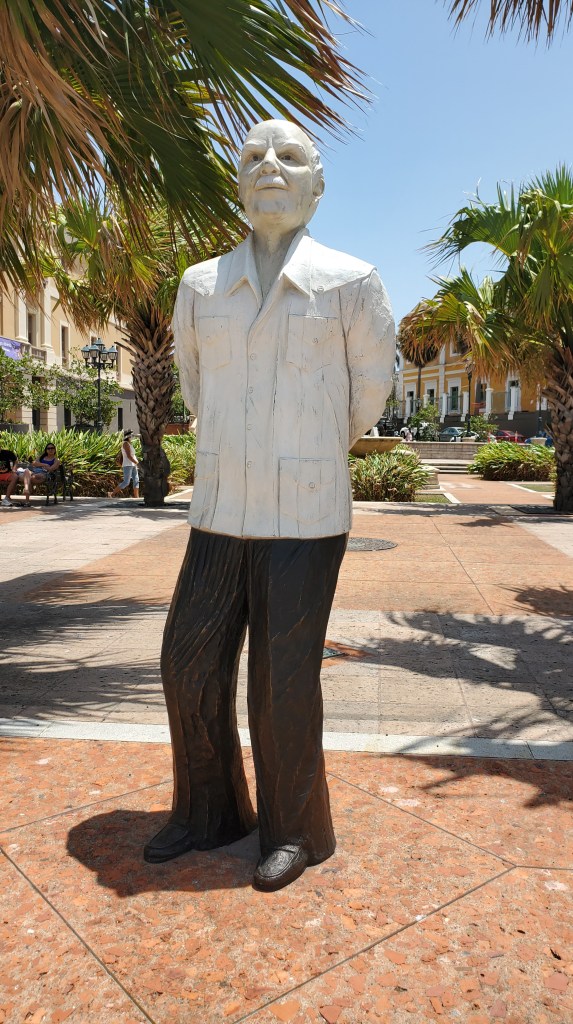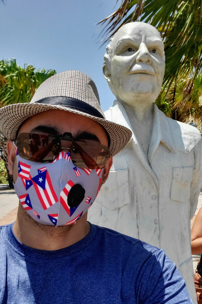 Culminamos nuestro recorrido frente al Bulevar del Valle, teniendo de un lado el castillo del Morro y el Atlántico, y del otro el Cuartel de Ballajá. En el punto medio la recién inaugurada estatua de don Ricardo Alegría en aparente contemplación de su entorno, uno que en gran medida él ayudó a preservar. La sede actual del ICP se encuentra apenas cruzando la calle, y se puede apreciar al fondo en la foto, a la derecha de la estatua el edificio de color amarillo.