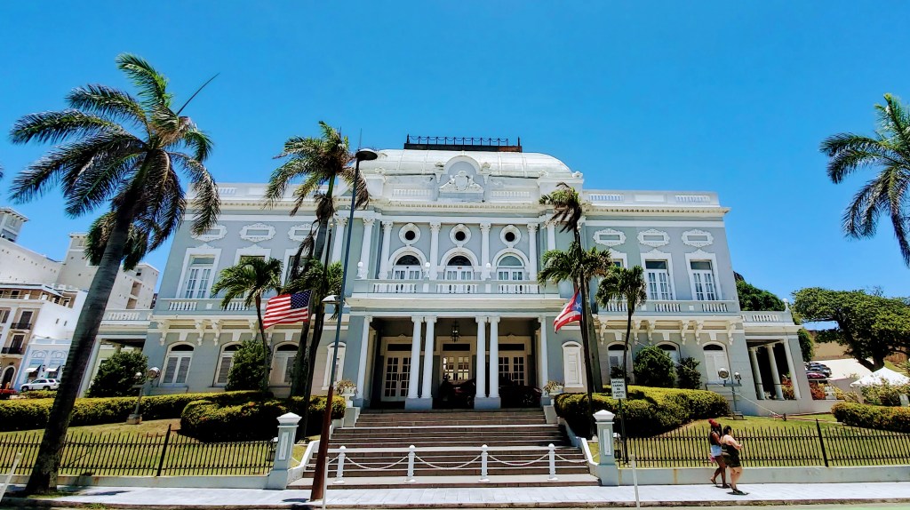De la escuela solo tuvimos que virarnos para observar el próximo punto del tour, lo que hoy en día se conoce como el Antiguo Casino de Puerto Rico.