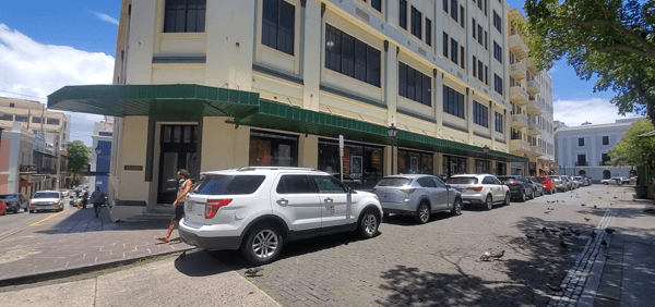 Esa casita azul que está en el medio en la foto arriba, lo que hoy en día es Gandía B. Realty, es donde comienza nuestra historia. Hace un siglo la casa era propiedad de la familia de doña Celeste Gallardo, madre de don Ricardo, mientras su padre José Alegría trabajaba en lo que se llegó a conocer como el edificio González Padín (que veremos más adelante). José Alegría también fue conocido por otra razón: fue uno de los fundadores del Partido Nacionalista Puertorriqueño.