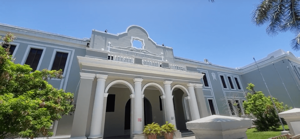 Notarán que el nombre de la escuela está en inglés – Jose Julian Acosta School – y esto se debe a que fue construida poco después de la llegada de los Estados Unidos a la isla, como una medida de imponer el inglés sobre el español. (Los primeros años de la Era USA fue una época en donde se «enseñaba» en inglés en las escuelas a pesar de que los niños no entendían nada).
