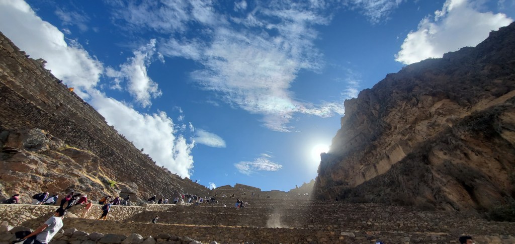 Considerando todo lo que hay que cubrir en un día para lo que les acabo de describir del Valle Sagrado, para cuando uno llega a Ollantaytambo el cansancio comienza a hacer estragos y, en el caso de nuestro grupo, fueron pocos los que tenían los ánimos para subir la fortaleza y ver algunas de las más impresionantes vistas. Yo estaba cansado también pero lo hubiera hecho si no fuese por el tiempo que tomaba completar la operación (pues no se puede bajar por donde mismo se sube, y la bajada era más larga), tiempo que requería un consenso del grupo para hacerlo o no.