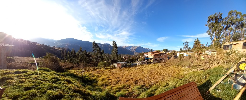Finalmente llegamos a Casa Salkantay, nuestra parada para el desayuno. Este es un bonito restaurante con una vista muy hermosa de Mollepata. El diseño es uno rústico y agradable. El desayuno fue bastante sencillo: pancakes, huevos, y frutas, con leche y tés. Pero así de sencillo como se oye, estaba muy bueno.