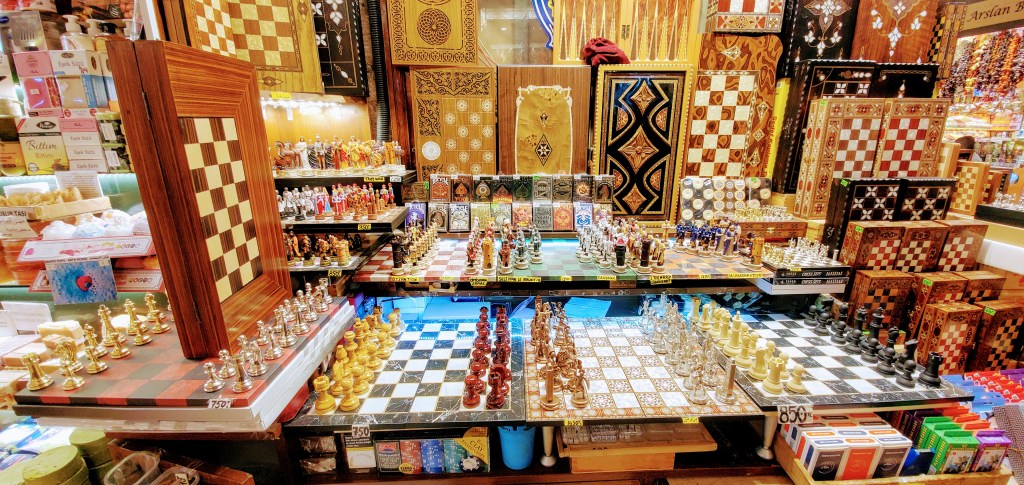 Este bazaar no fue el primer lugar en el que compré un tablero de ajedrez en Turquía. Esa distinción le corresponde a una tiendita en un mirador de Capadocia. Es que para cuando visité Capadocia en octubre del ´21 todavía no había tenido la experiencia de este bazar, que visité al regreso a Estambul luego de completar un circuito por Turquía. A los pocos días, comenzando noviembre, tuve la oportunidad de regresar a otro circuito por Turquía, y ya para ese entonces sabía exactamente hacia dónde dirigirme tan pronto nos llevaran al Bazaar de las Especias.