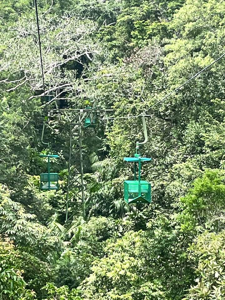 Seguimos para el teleférico, dándonos la oportunidad de ver desde arriba la copa de los árboles de esta selva. Al final del recorrido llegas a un mirador de diez pisos que tienes que subir caminando para disfrutar de la vista al río Chagres.
