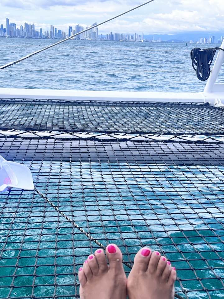 Temprano en la mañana tome un tour en un catamarán para la isla Taboga en el Océano Pacífico, navegamos como una hora. Al llegar a la isla, la caminamos y disfrutamos de un día de playa en su mar oscuro. Una experiencia relajante, divertida y hasta un poco educativa.